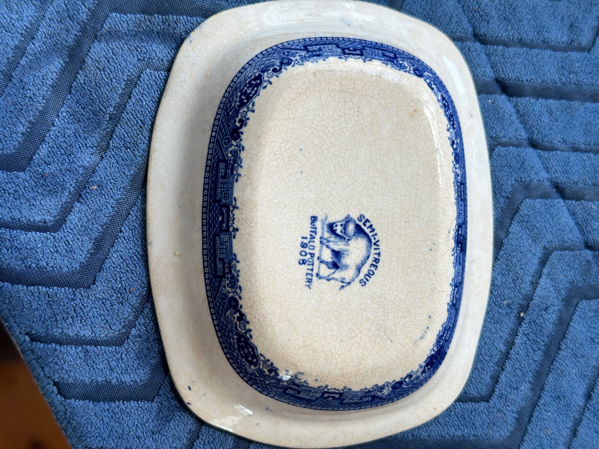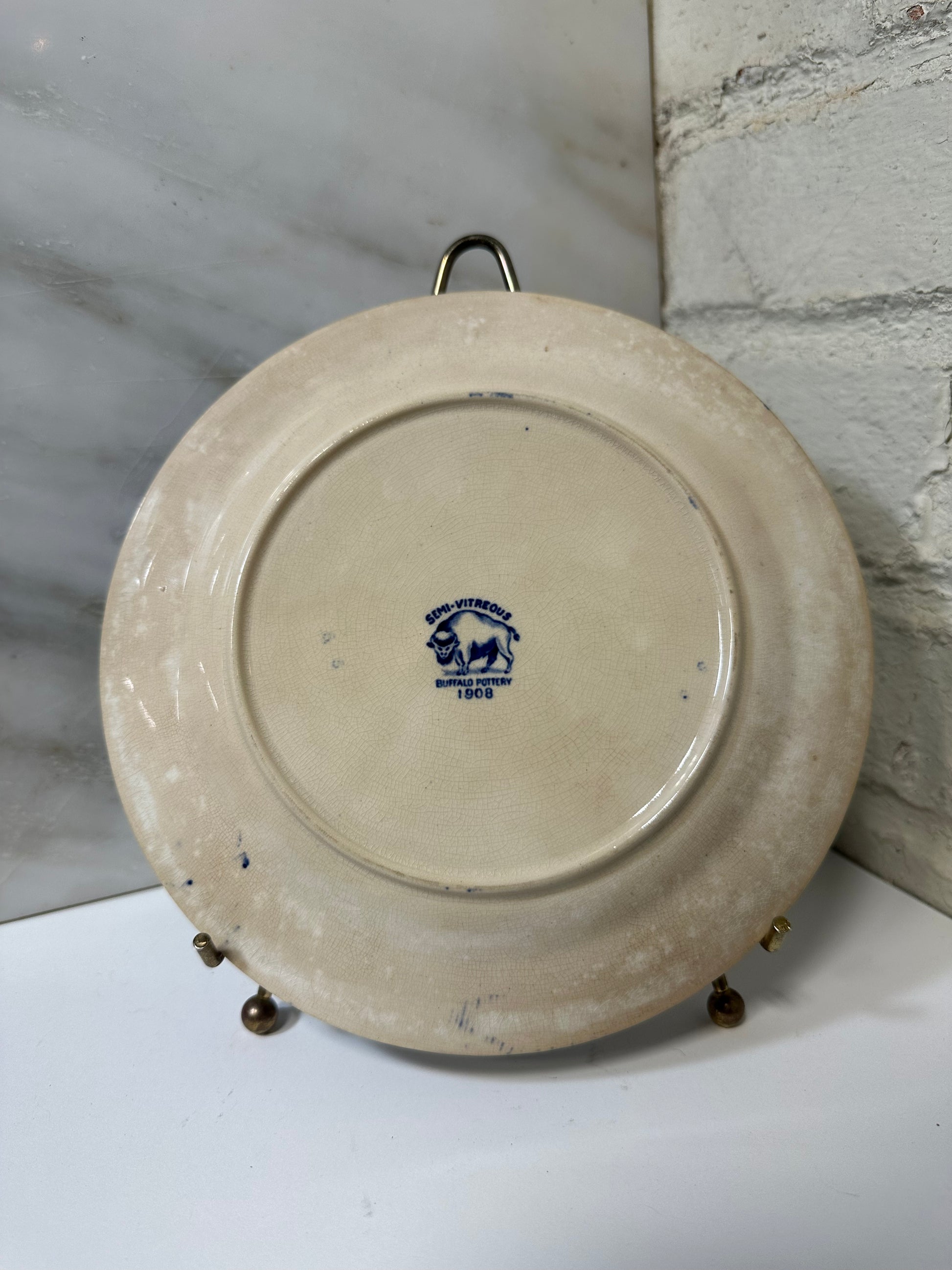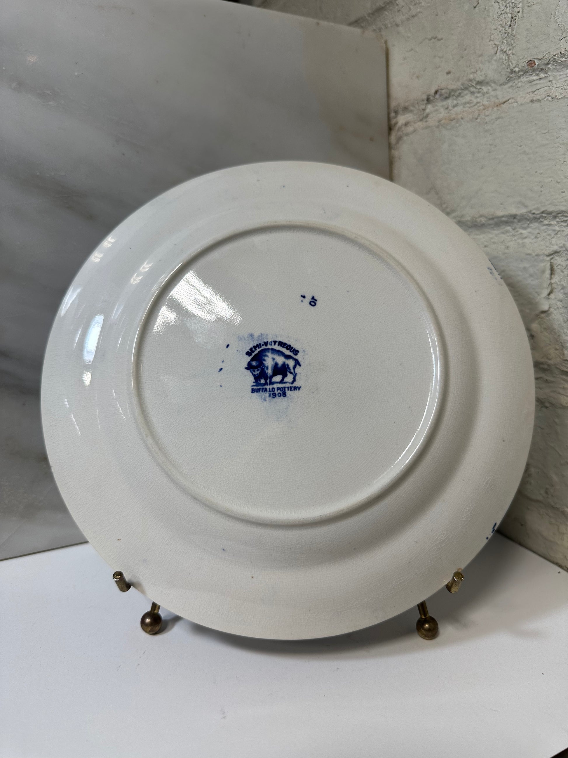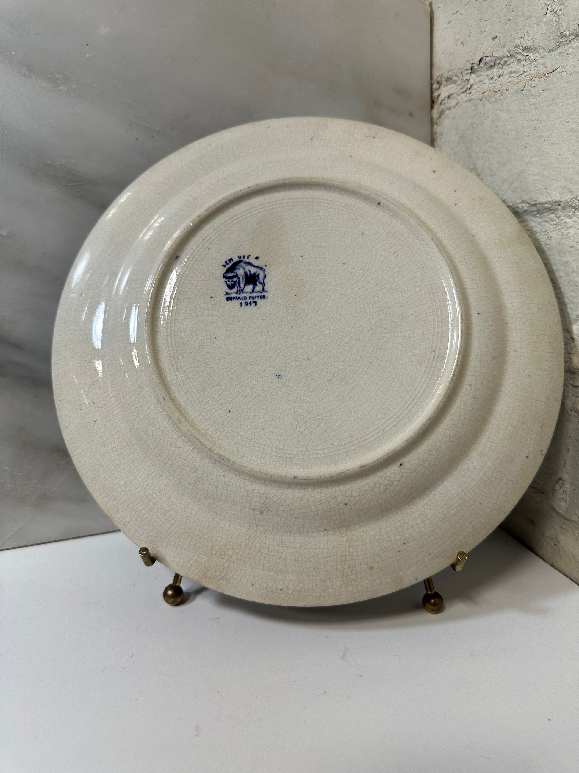 In 1907, Buffalo Pottery introduced the first American version of the Blue Willow China pattern. Inspired by an ancient Chinese love story, the pattern depicts a tragic tale of a young girl, her forbidden lover, and a spurned suitor. Symbolized by doves, their souls endure. Buffalo's Blue Willow pattern continues to captivate collectors, adding to the enduring allure of blue and white china.