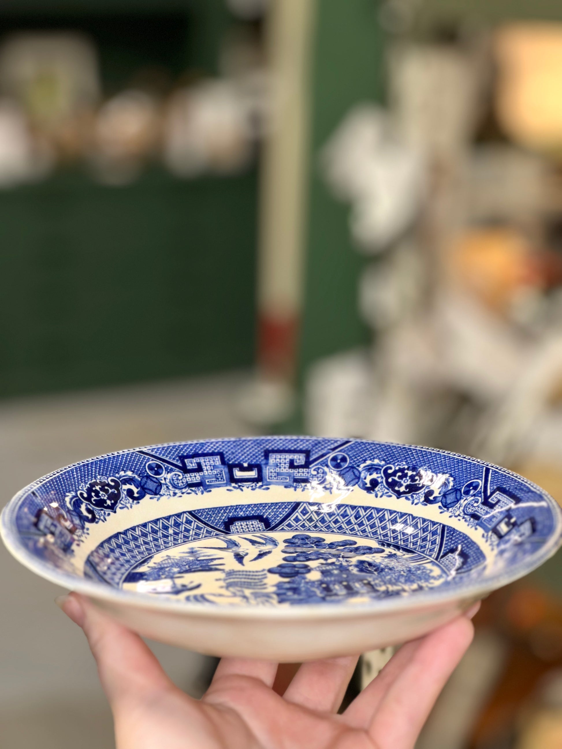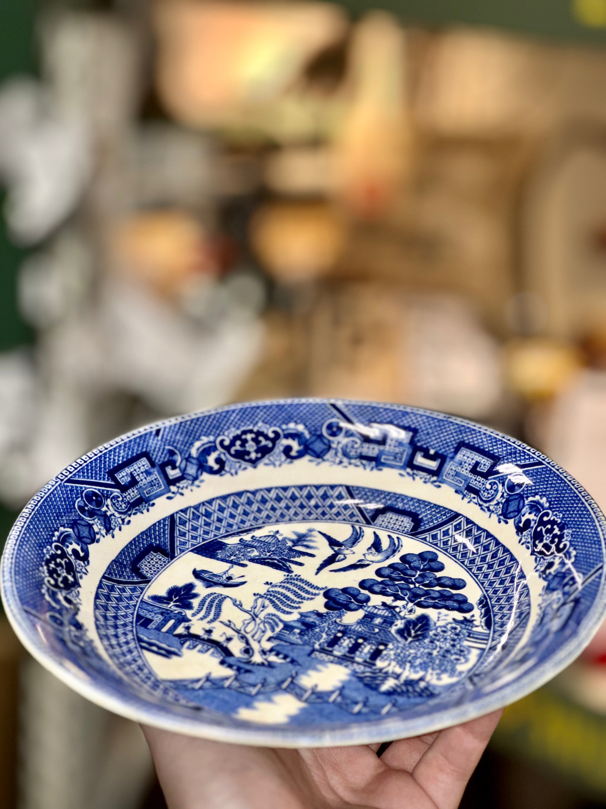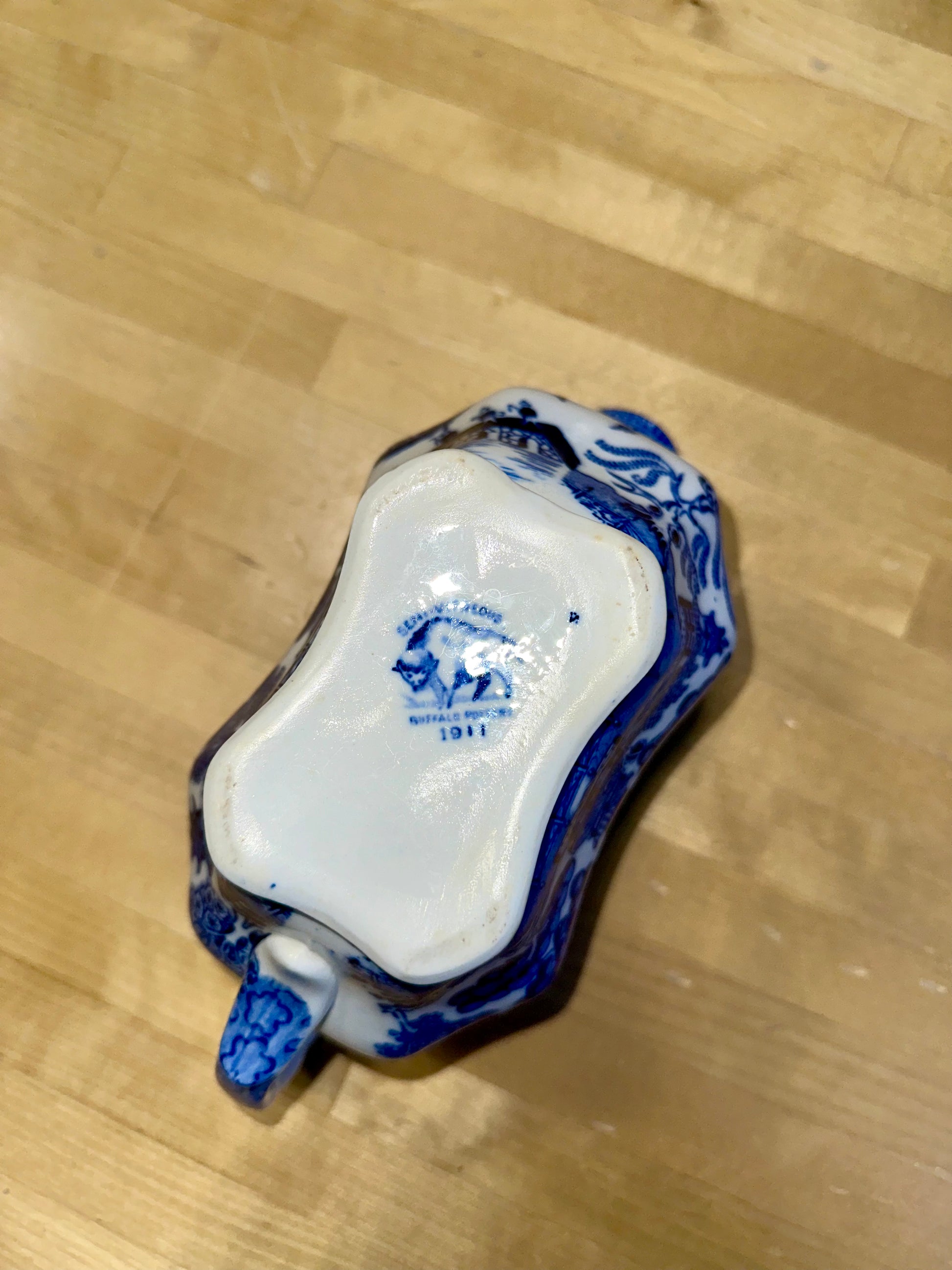 In 1907, Buffalo Pottery introduced the first American version of the Blue Willow China pattern. Inspired by an ancient Chinese love story, the pattern depicts a tragic tale of a young girl, her forbidden lover, and a spurned suitor. Symbolized by doves, their souls endure. Buffalo's Blue Willow pattern continues to captivate collectors, adding to the enduring allure of blue and white china.