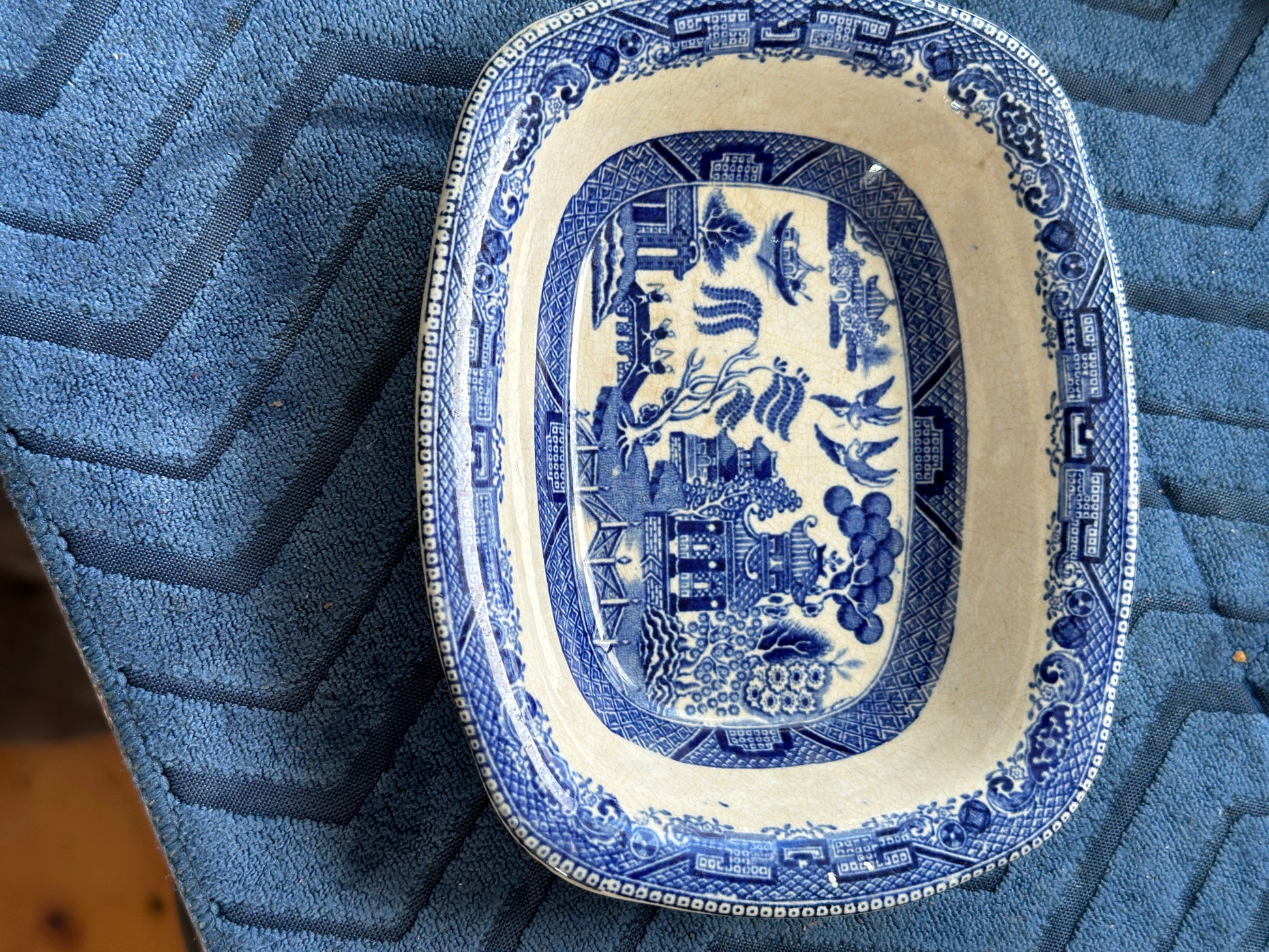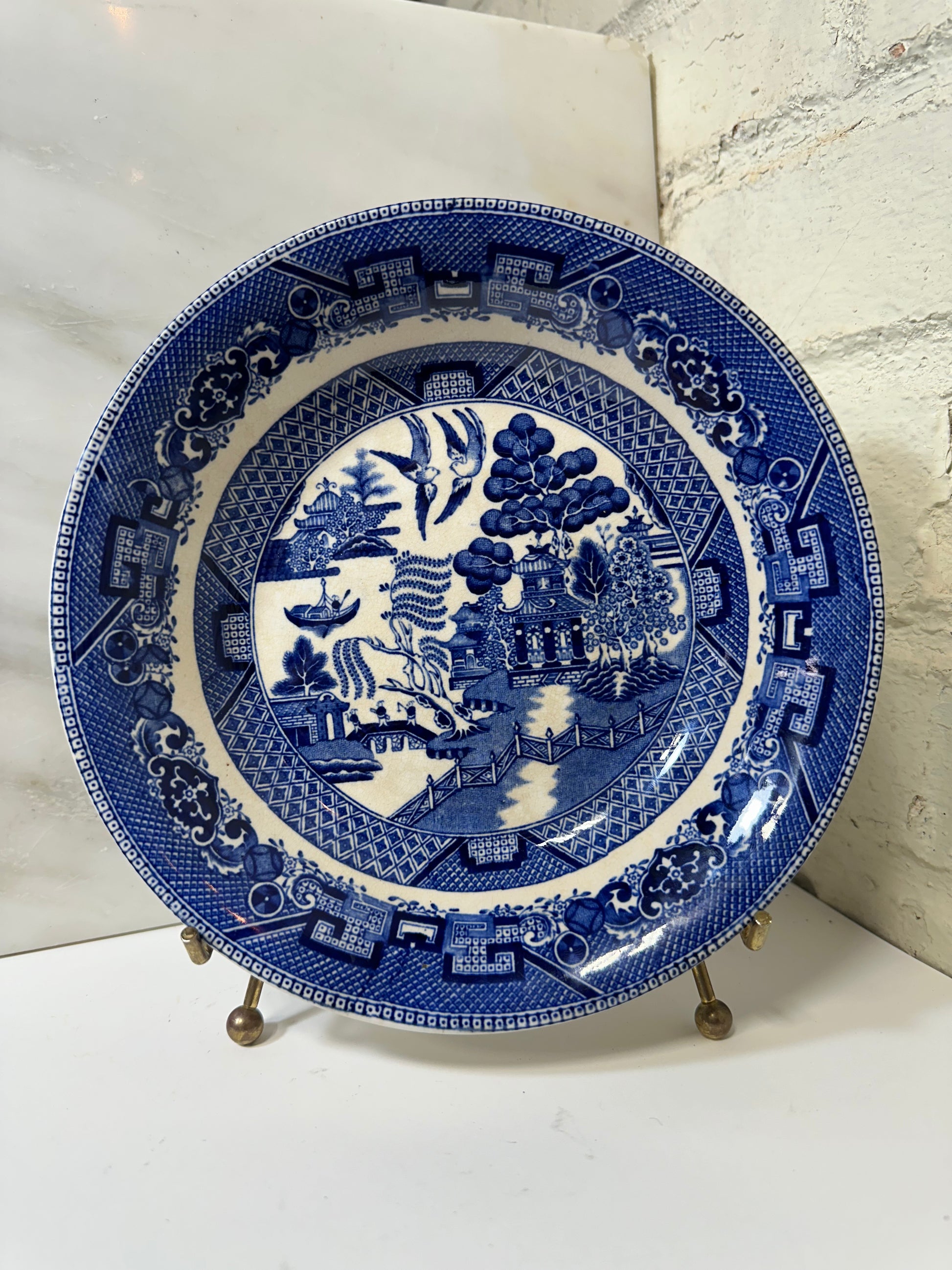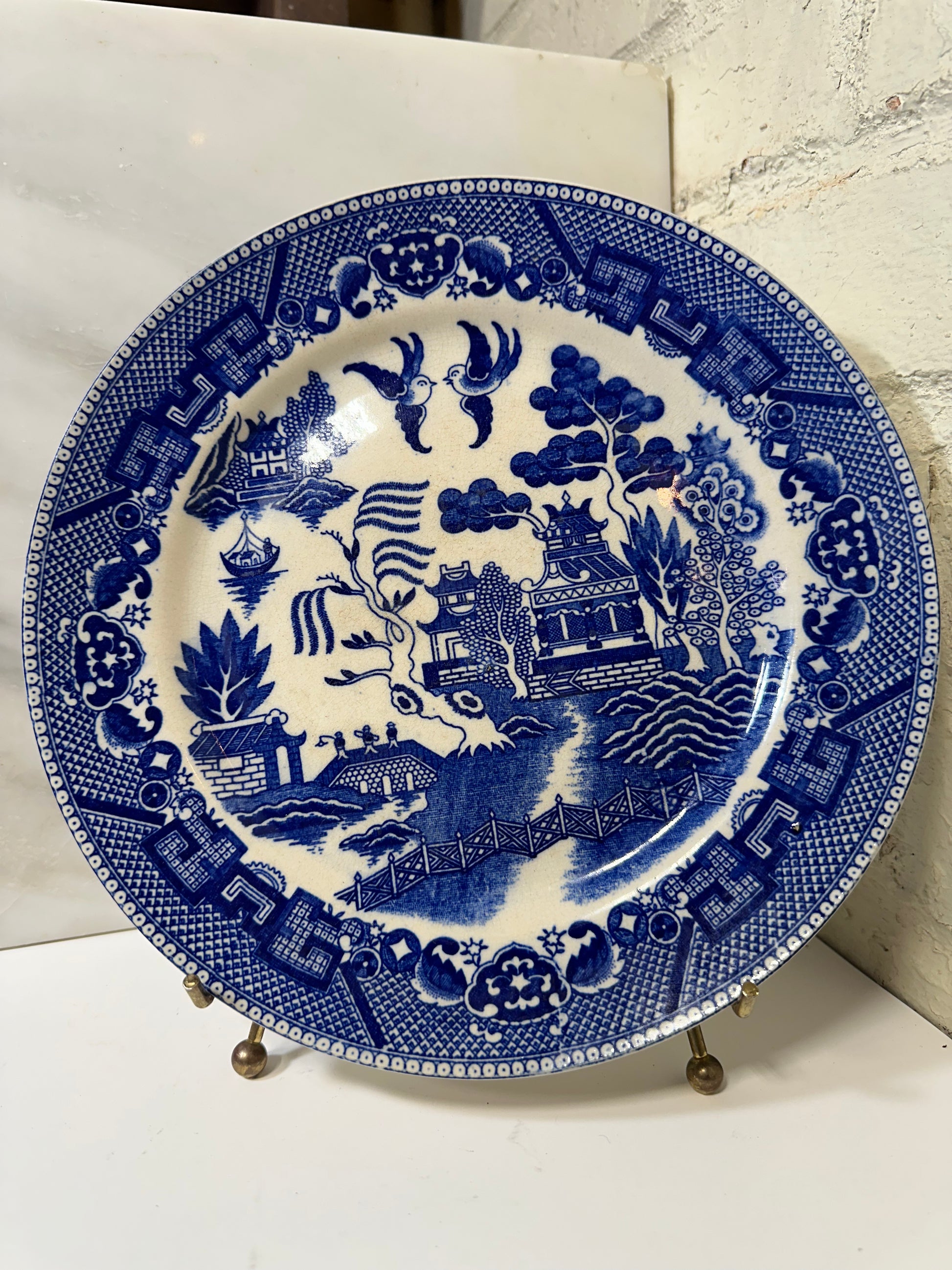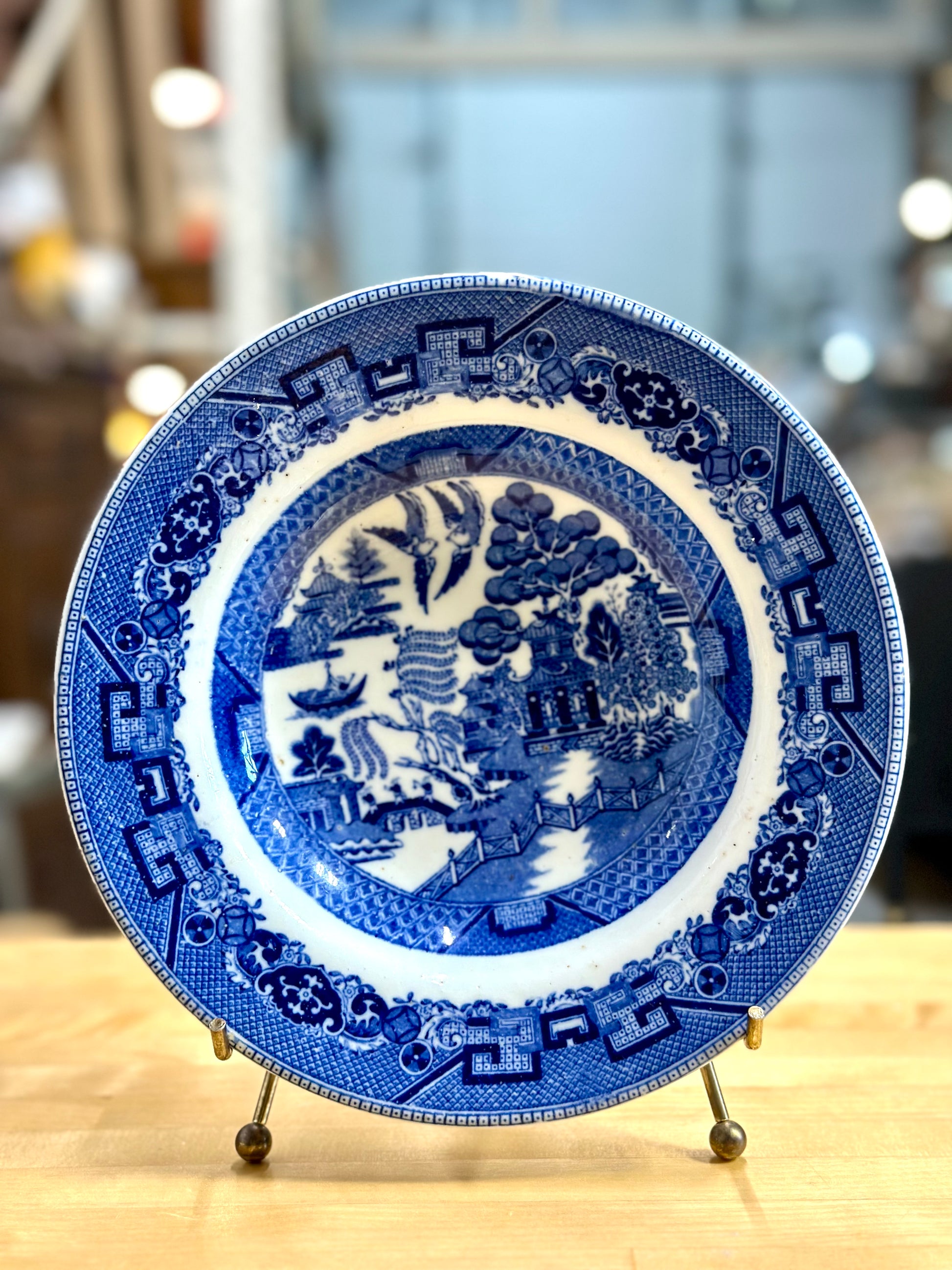 In 1907, Buffalo Pottery introduced the first American version of the Blue Willow China pattern. Inspired by an ancient Chinese love story, the pattern depicts a tragic tale of a young girl, her forbidden lover, and a spurned suitor. Symbolized by doves, their souls endure. Buffalo's Blue Willow pattern continues to captivate collectors, adding to the enduring allure of blue and white china.