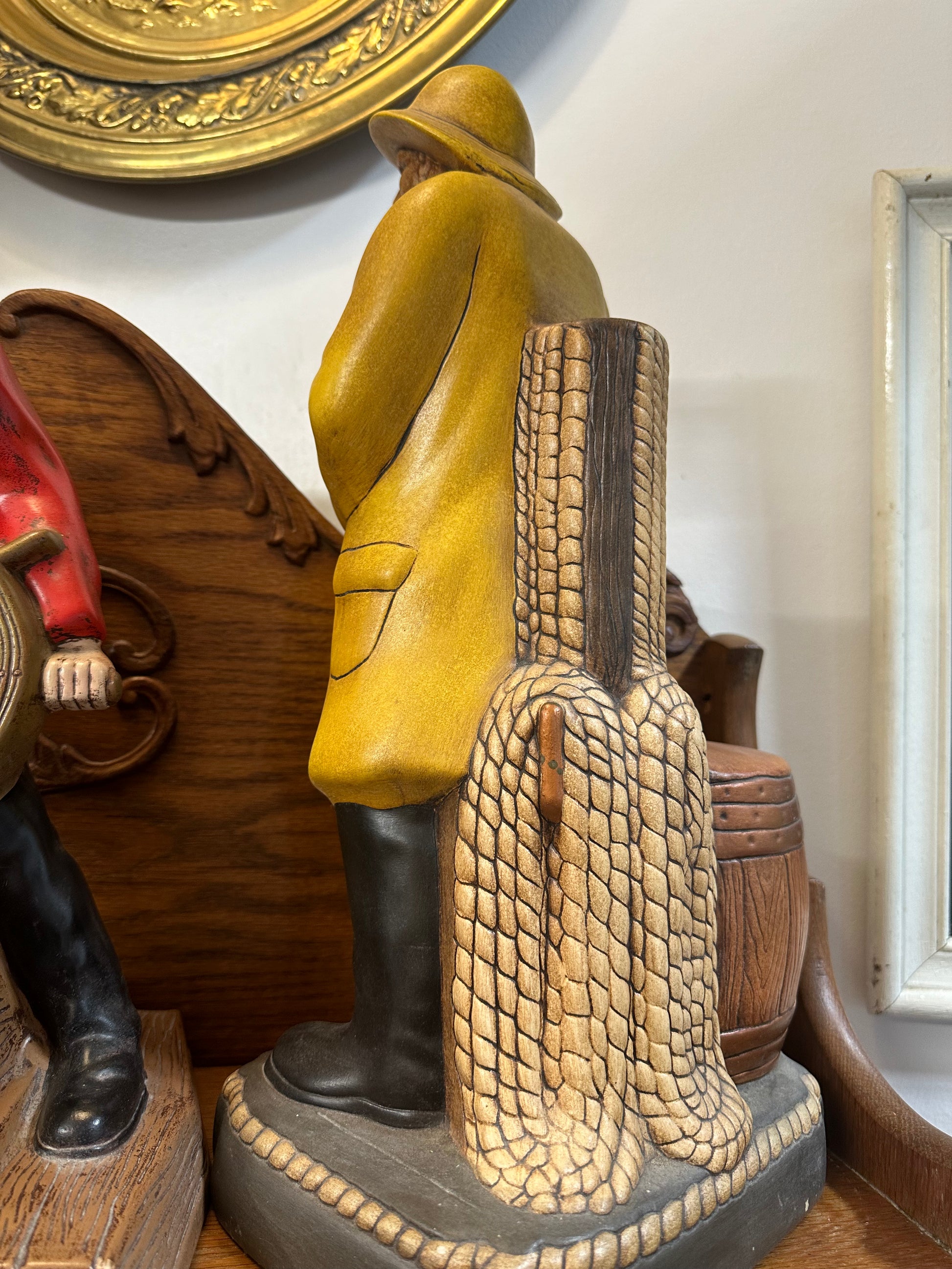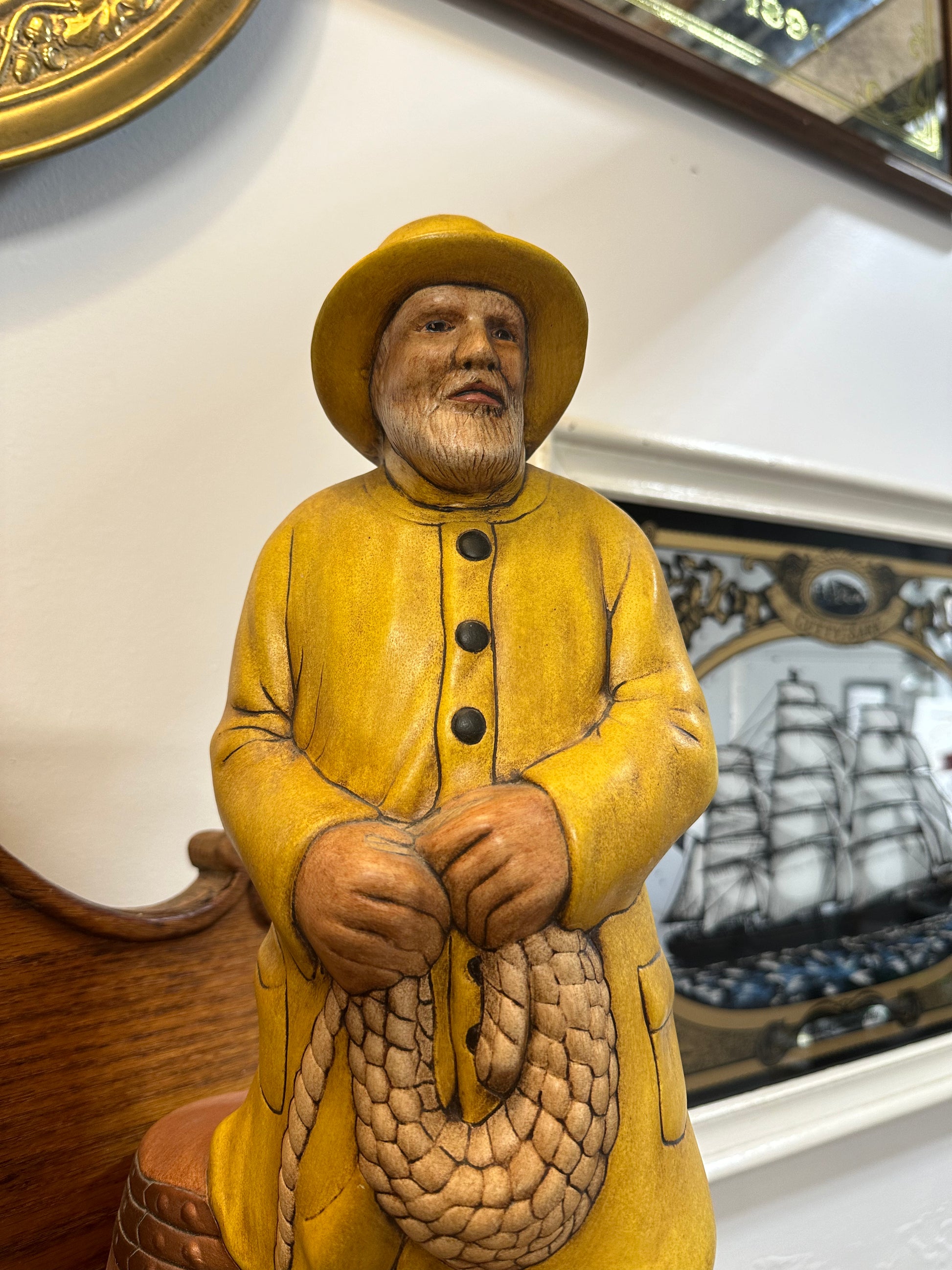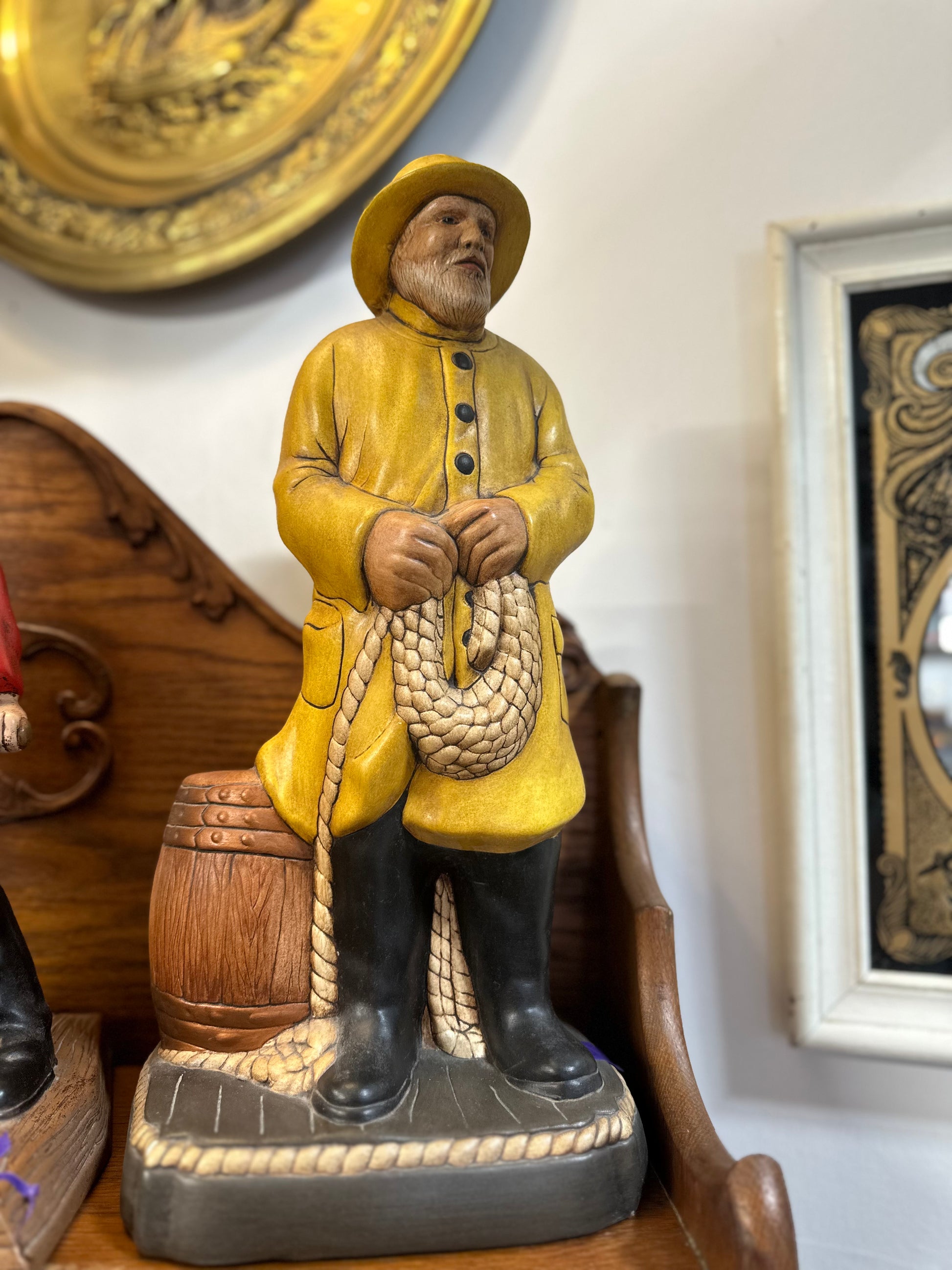 During the mid-20th century, ceramic fishermen's figurines became a popular element in home decor. These nostalgic and whimsical pieces added a unique touch to interior design. Decorating with ceramic fishermen reflected the era's appreciation for blending traditional craftsmanship with modern design sensibilities. It combined a sense of nostalgia with contemporary aesthetics, making these ceramic pieces an integral part of mid-century home decor.