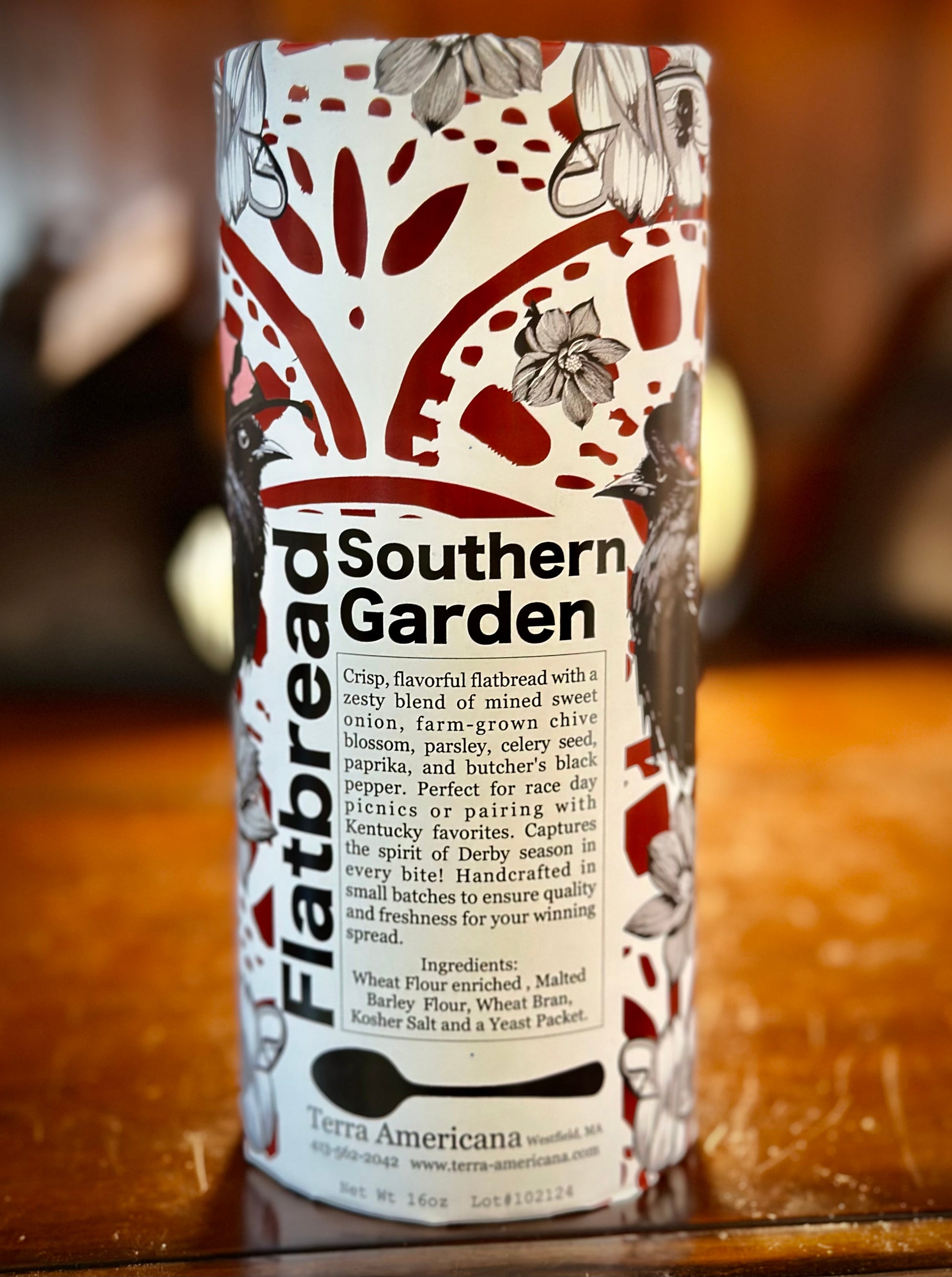 During Kentucky Derby week, we stumbled upon a hidden bakery in Louisville, drawn in by the aroma of fresh bread and zesty spices. There, we discovered the perfect flatbread for our Derby picnic. Infused with mined sweet onion, farm-grown chive blossom, parsley flakes, celery seed, paprika, and butcher's black pepper, this crisp yet tender creation paired beautifully with our Kentucky favorites and mint juleps. Portable and flavorful, it embodied the refined taste and festive spirit of the Derby, elevating our trackside experience with each savory bite.