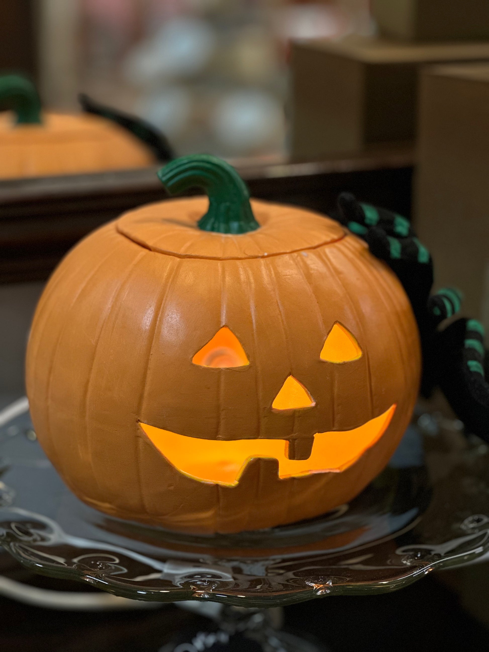 Add a warm, spooky glow to your Halloween décor with this charming ceramic pumpkin featuring a built-in light inside. Crafted from high-quality glazed ceramic, this festive pumpkin combines seasonal style and cozy illumination — perfect for creating an inviting fall atmosphere in your home.