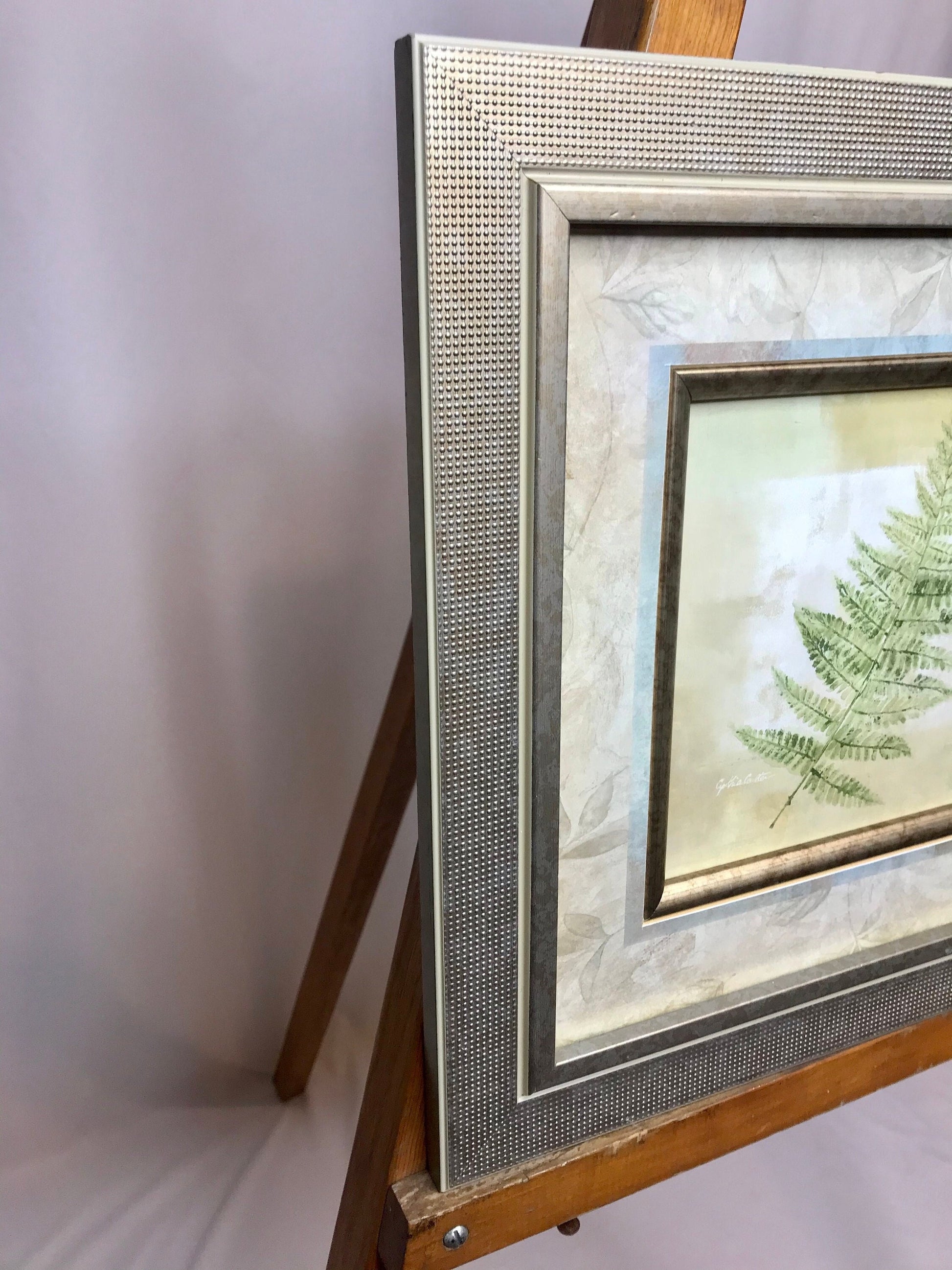 Free shipping on orders over $35If you are looking for more details or private label information, call 413-562-2042 or email ebf@terra-americana.com. MATTED FERN DESIGN BY CYNTHIA COULTER/ GLASS FRAMED PICTURE/WALL DÉCOR Sawtooth Hanger. Measures: 13 5/8"H x 13 3/4"W x 5/8"D Pre-owned. Visible wear and tear on frame. Some marks on top right and small mark in front bottom. (See Pictures) Be Sure To Take A Moment To Admire Our Crystal And Vintage Cut Glass Pieces https://www.etsy.com/shop/ElmBrookFarm?section_id=37040865 VISIT OUR SISTER STORE, Terra Americana https://www.etsy.com/shop/TerraAmericana Gourmet Mixes, Classic Ingredients, Delicious Recipes