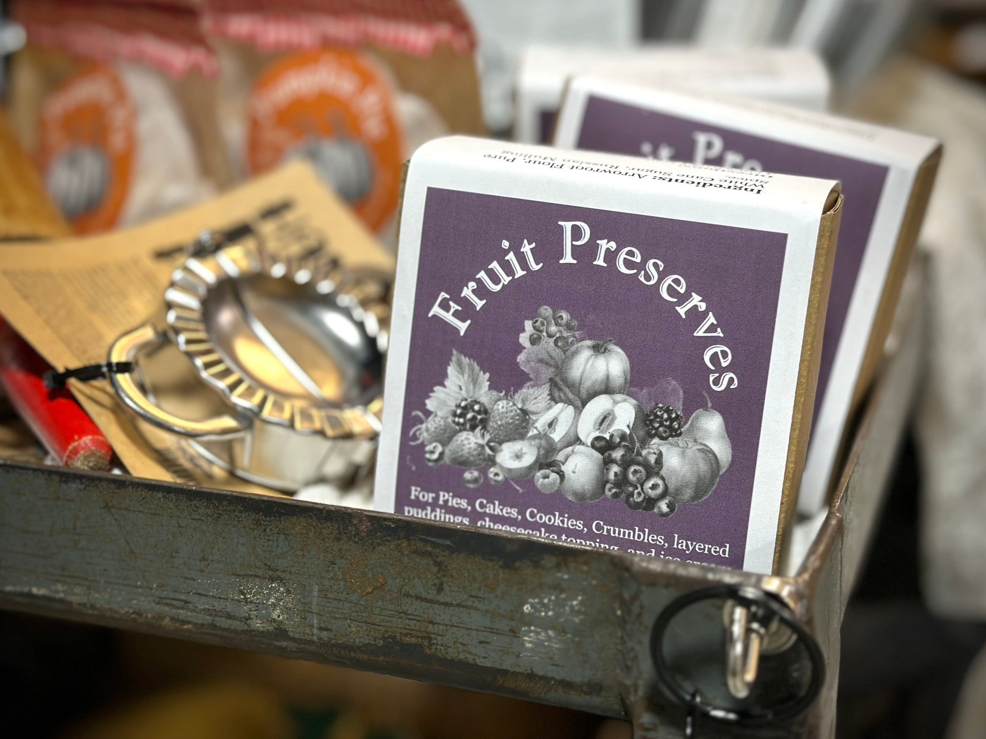 FRUIT PRESERVE MIX - 16 oz. BOX Add fruit: Peeled & Sliced Apples, Peaches, Pears, or Whole Berries. INGREDIENTS: Cane Sugar, Tapioca, Arrowroot, cinnamon, nutmeg, coriander, ginger, & orange extract (alcohol, water, and pure orange oil). Recipe under Bonnet.