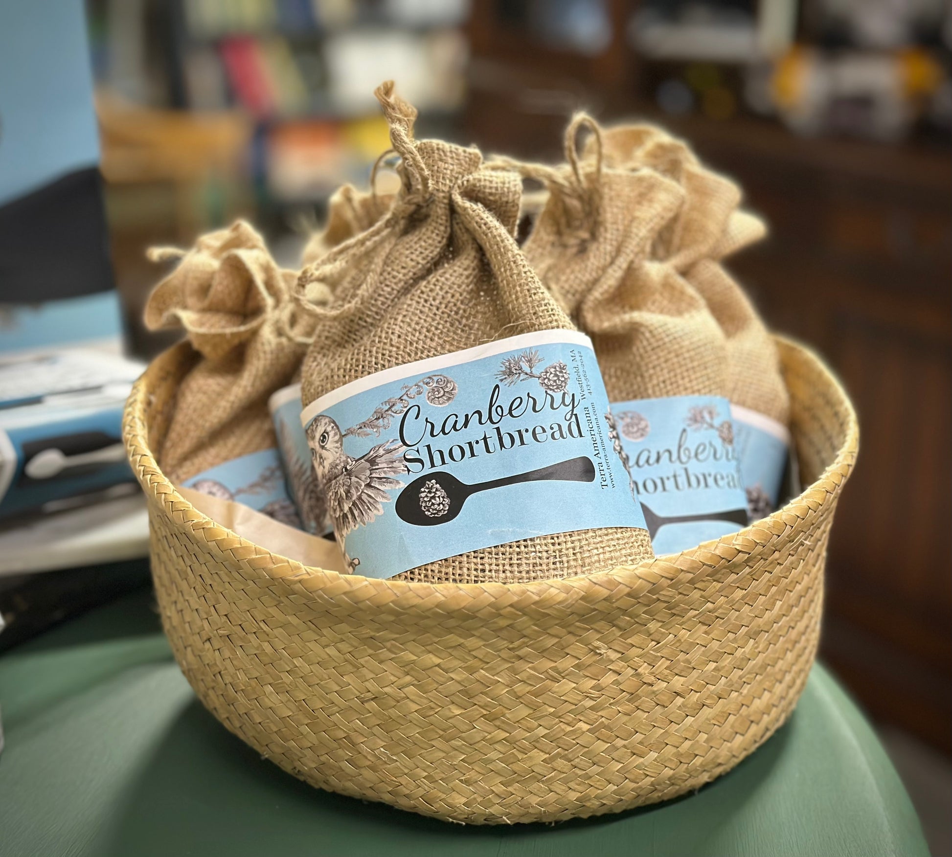 CRANBERRY SHORTBREAD - Burlap Bag INGREDIENTS: wheat flour enriched (niacin, reduced iron, thiamine, mononitrate, riboflavin, folic acid), malted barley flour, sugar, unique orange vanilla sugar (unique pure orange extract [alcohol, water, and orange oil], vanilla extract [vanilla, water, propylene glycol, caramel color]), and craisins.