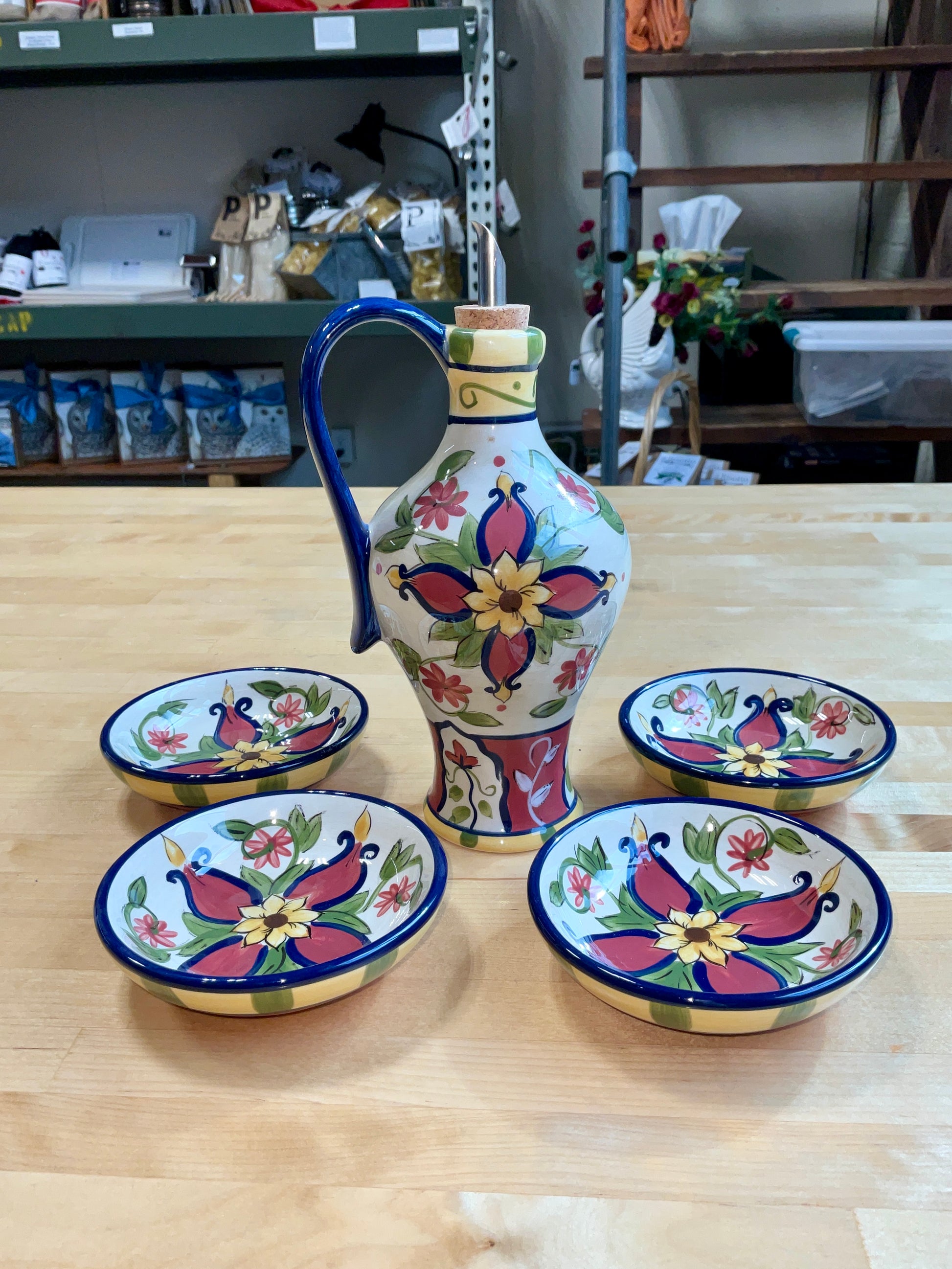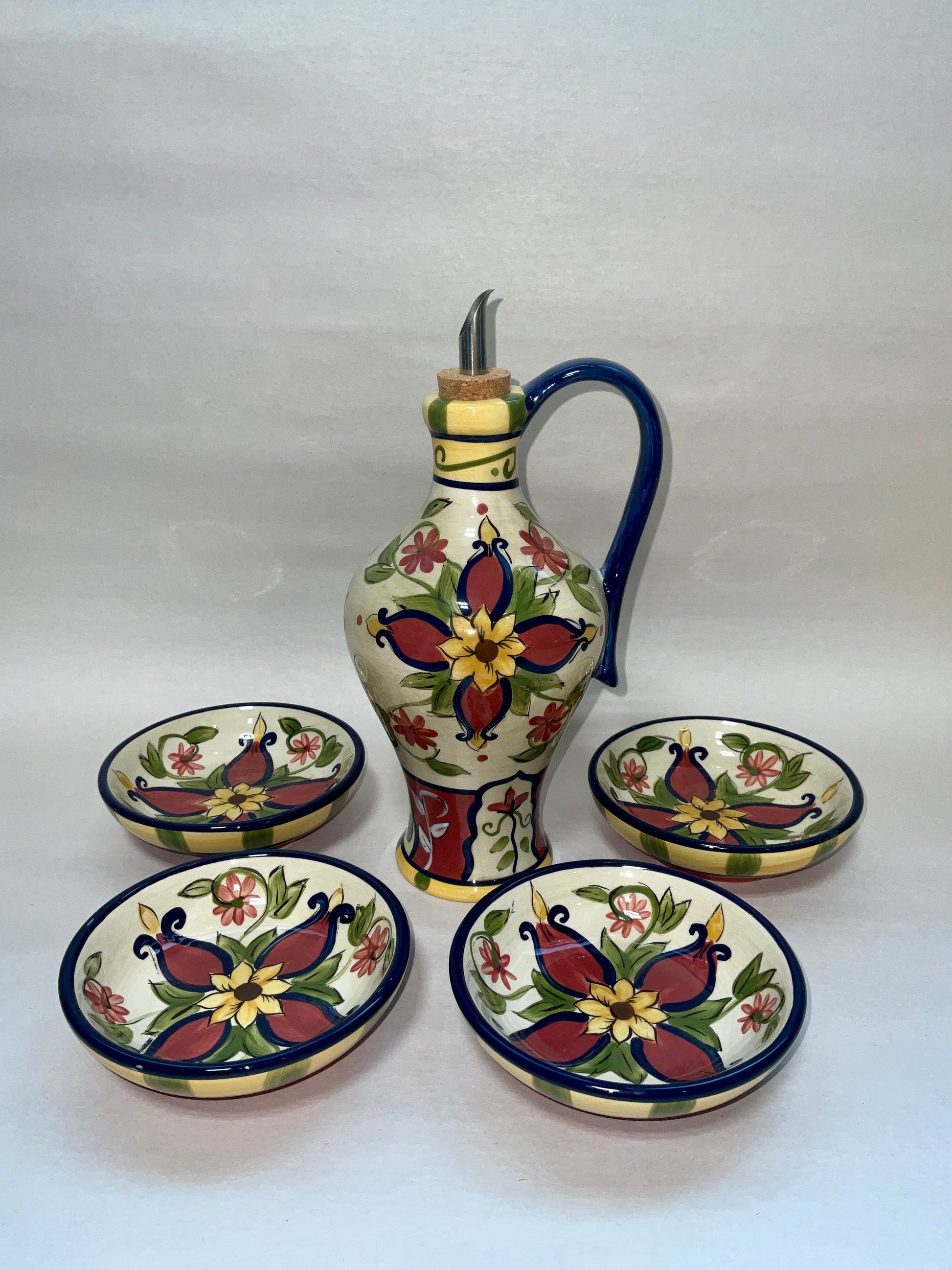 Vallarta Pier 1 Hand Painted Earthenware Oil Cruet Set