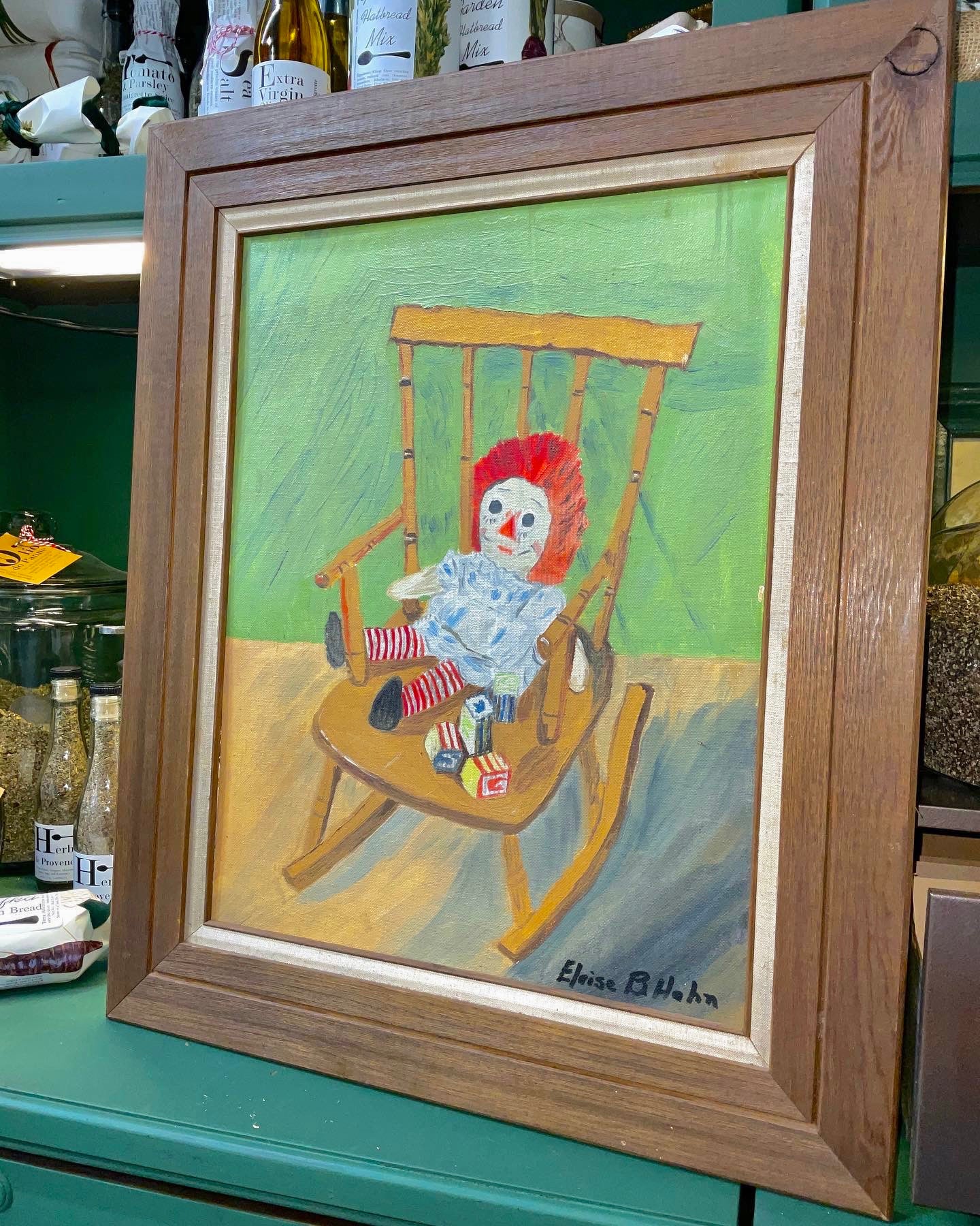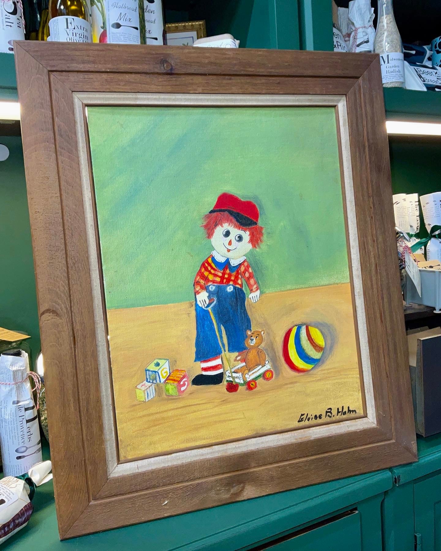 These Vintage Framed Raggedy Ann & Andy are Hand-Painted and Signed by a Local Artist. They're large and appear to be in excellent condition. Also, the brown oak frame really pops and would lend well to the farmhouse, folk art, or boho decor.